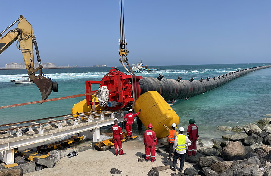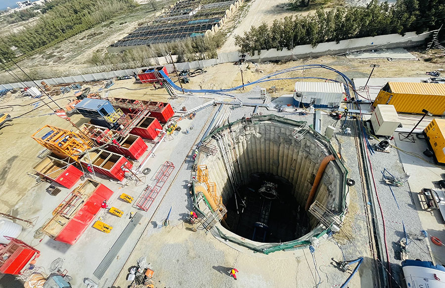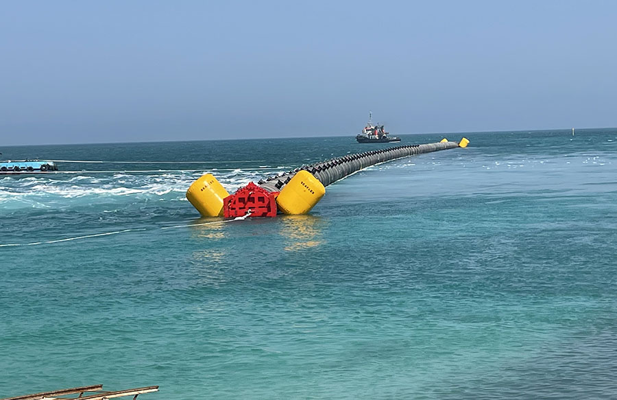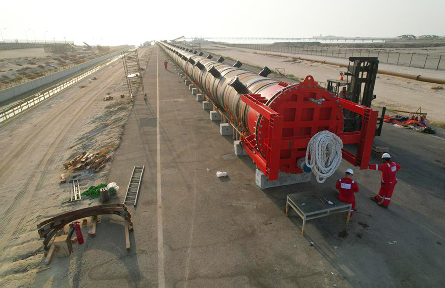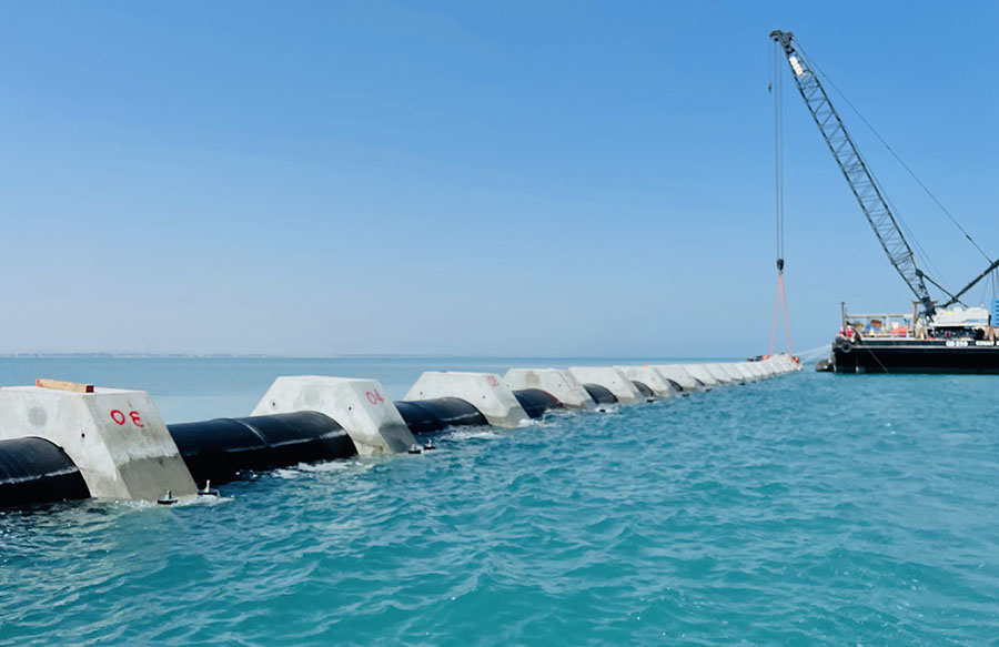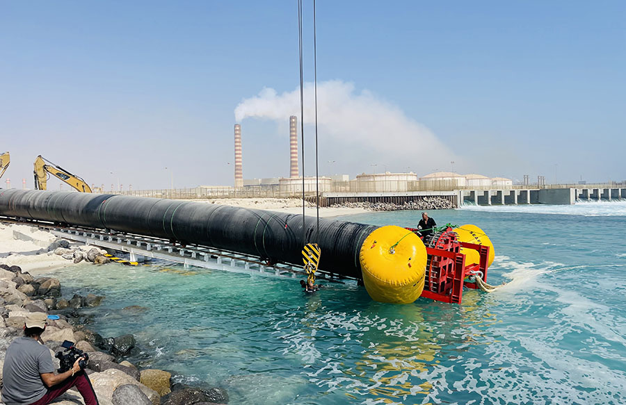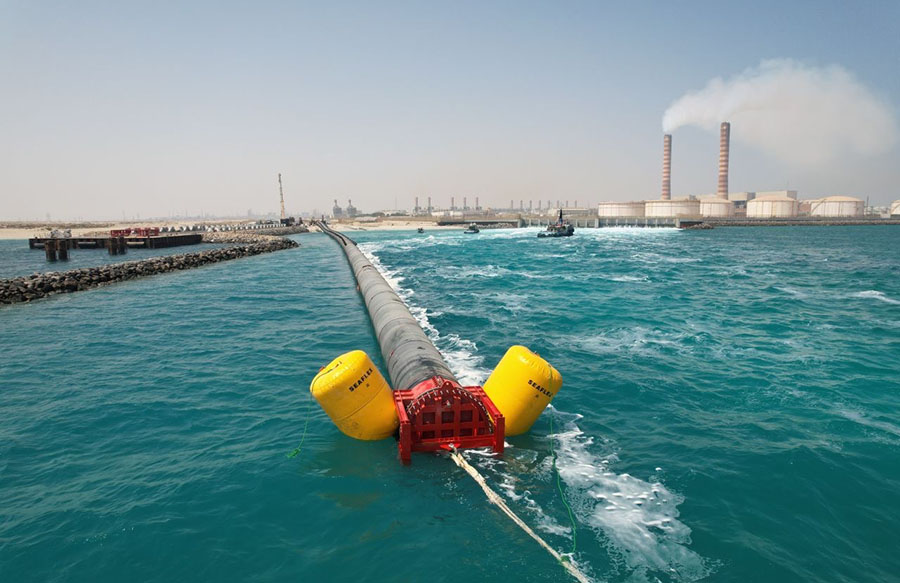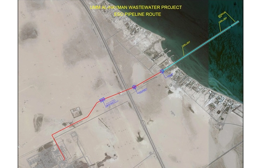 The onshore part of ESO line covers for 3.81 km. After the onshore part, the tunneling part of offshore section extends around 1.96 km into the Arabian Gulf Sea. Treated Sewage Effluent is dispersed into the sea with the help of non-return duckbill valves which are spread over a length of 310 m diffuser pipe, which is connected to the end of offshore tunnel.
