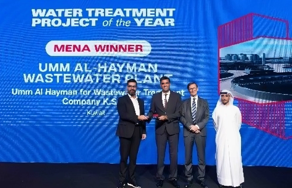 Umm Al Hayman Wastewater Treatment Company K.S.P.C. has been recognized at the prestigious MEED Projects Awards in association with Mashreq. We are thrilled to have received Project Award of the Year 2024 and Water Treatment Project of the Year – a testament to our dedication to innovation, sustainability, and excellence in infrastructure development.